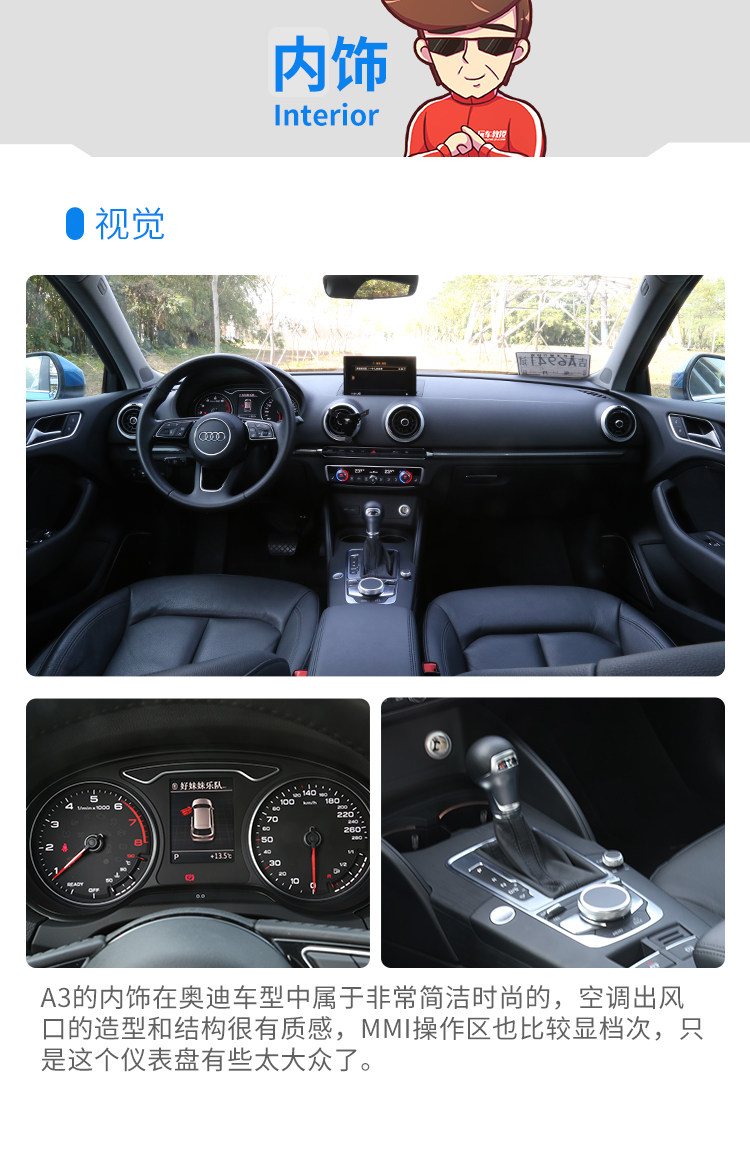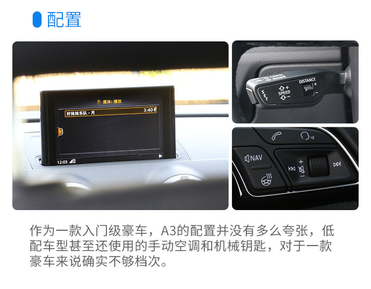 和如今不少奥迪新产品相比,A3的底盘质感都要更加出色,高速行驶时的稳定性相当出色,而且轧过沟坎和减速带时给人的感觉也非常整,方向盘的调校依然是奥迪的风格,电子味比较重,路感不够好。