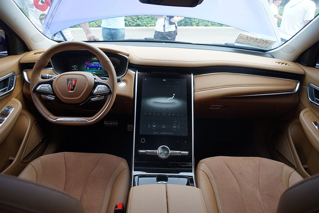 作为一款新能源车型,大尺寸的中控屏幕几乎是每一款车型必备的一项配置,擅长智能交互系统的荣威品牌自然不会例外,也由于有一块12.3英寸的屏幕在,中控布局也显得简洁大方;但是由于定位的关系,内饰的装配工艺与材质用料则明显的向高端化看齐。