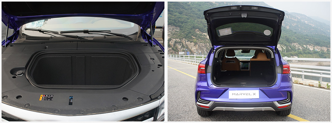 如此的设计除了造型之外,更有降低整体风阻系数的效果,MARVEL X的风阻系数低至0.29Cd,如此数据放在SUV车型中已经算是相当优秀,降低风阻能获得更优秀的节约能源消耗的表现,在燃油车层面有助于省油,在纯电动车层面,低风阻也能在理论上提升电机的续航里程。