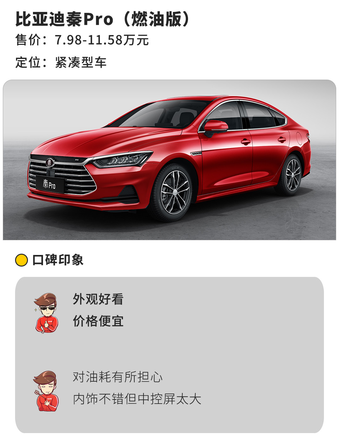 全新一代比亚迪秦Pro才刚上市不久,口碑还比较少,但从新车上市后,消费者的反应,对其大气的外观设计还是很肯定的,再加上接受度很高的价格,教授认为秦Pro完全有可能成为未来自主品牌紧凑型轿车的主流选择之一。而车型推荐方面,教授觉得10.98万元的次顶配车型就足够了,无论是安全性配置还是舒适性配置都比较丰富,1.5T+6DCT的动力也完全够用。