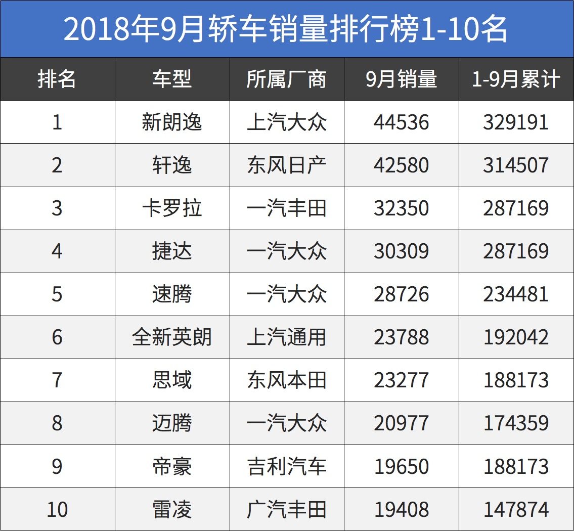 又是各大车企销量公布之际,回顾上个月,在轿车细分领域中,有三款车型的销量突破了三万辆大关。9月份的销量情况,在轿车细分领域中,同样也可圈可点。相对而言,轿车销量数据要比SUV车型丰富且稳定得多。在经历汽车传统淡季的8月之后,传统的“金九银十”时期,是否能让整体车市有很大幅度的变化呢?9月份,在轿车细分领域中,有两款车型的销量突破了4万辆大关,然而,事实真的是这样吗?