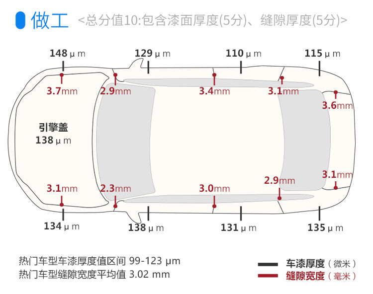 通过实际测量的数据来看,领克02的钣金做工还算为中等偏上的水准,左右两侧门板的缝隙相对均匀合理,比起许多自主品牌的SUV车型都要出色一些。但车漆厚度相对较薄,与德系品牌相比还是存在着一定的差距,在这方面领克还可以有所优化。