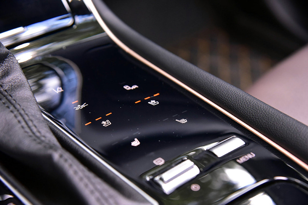 较大的10.1英寸中控显示屏及12.3英寸全液晶仪表盘,连换挡区域,也增添几分科技化。在体现美学的同时,功能性也不少,可以通过该区域的触摸点击,即可操作座椅舒适、安全等功能,但要小心指纹的采集破坏了美感。