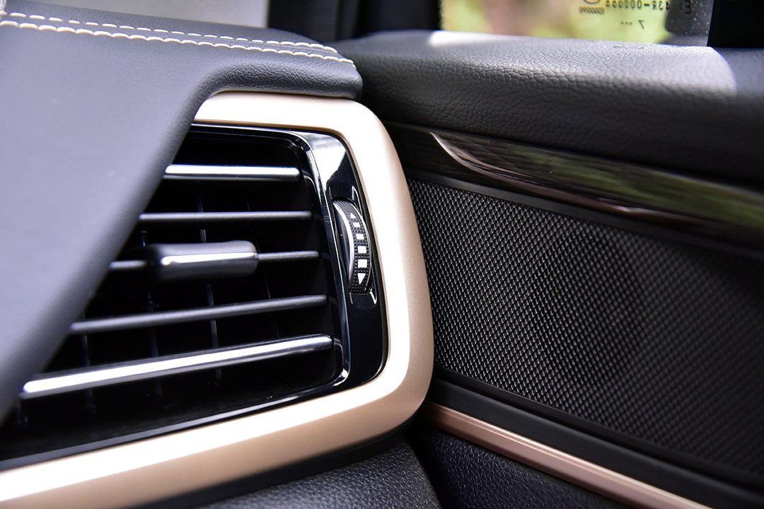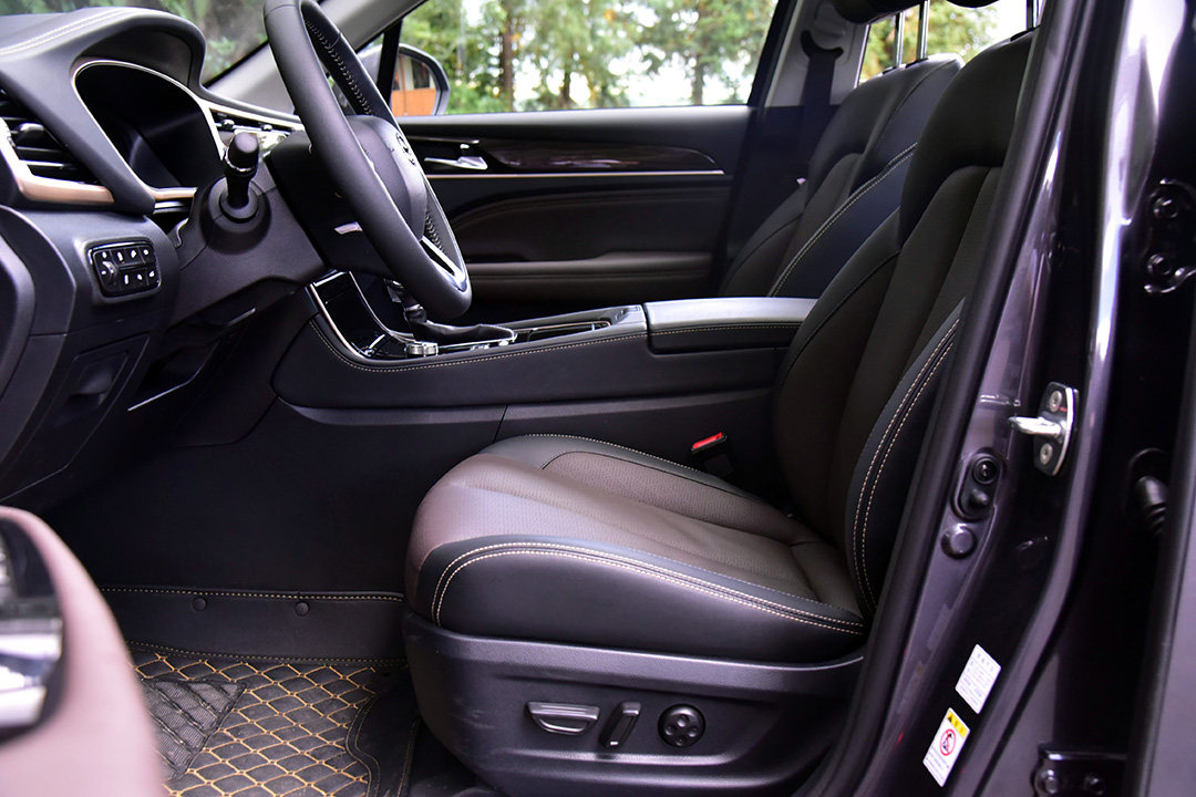 座椅软柔度较为不错,但值得一提的是,门板稍有些塑料化。前后四个车门的门板虽然有软性材质覆盖,但覆盖面积如果再提高点的话就更不错了。与此同时,中控台上方区域的软性材质所带来的柔软度,也得优化一些。