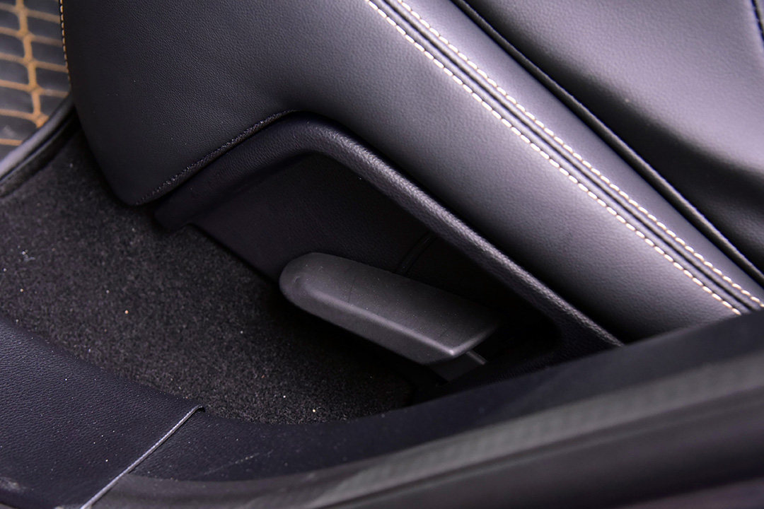 在后排座椅放倒的方式中,GS5的后排放倒调节被安置在座椅下方。与一般设置在座椅后上方来比较的话,从控制的位置来说,GS5则会轻松些,只需要在下方掰动就行,其他车型的话就可能需要转过身去操作。