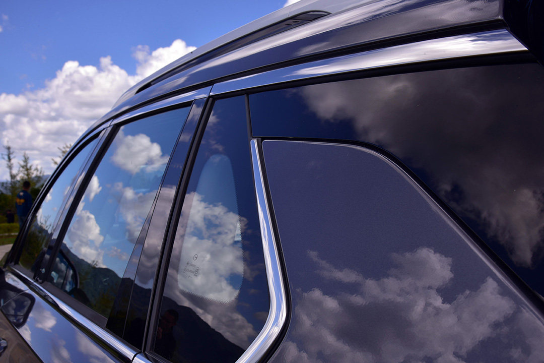 侧面的线条流畅,出锋或锋线,也许能更好的描绘D柱的设计。在普通的悬浮式设计上,采用弯月式的半隐藏D柱,犹如弓箭一般,蓄势待发。既考验设计,也考验工艺成熟水平。