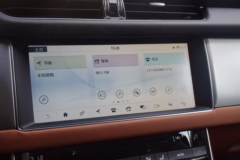 在人机交互上,捷豹XFL采用了12.3英寸全液晶仪表盘和10.2英寸的中控屏组合。中控屏支持car play和百度carlife系统,而且car life支持QQ音乐、高德地图和喜马拉雅FM三个本土软件,实用性大大提升。