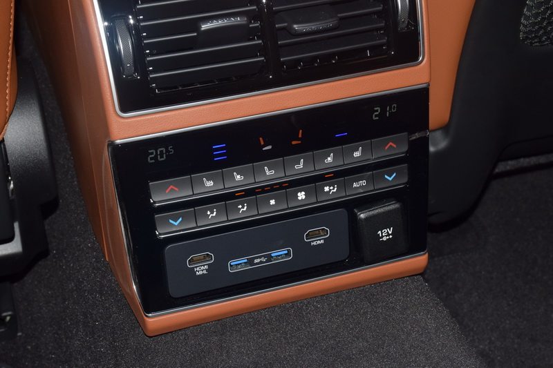 后排的配置可谓是齐全,后排双区独立空调、座椅通风/加热、双USB/HDMI接口、座椅按摩,还有一个后门开启版本的“并线辅助”。