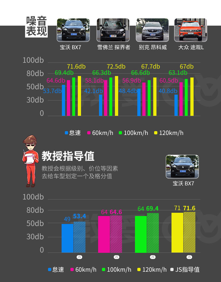 此外,宝沃 BX7在车厢隔音处理方面也表现不佳,尤其是在行驶过程中明显的风噪会大幅影响乘坐舒适性,虽然在怠速和各种车速下的行驶噪音均低于平均值,但并不能接近同级别合资车型的水平。