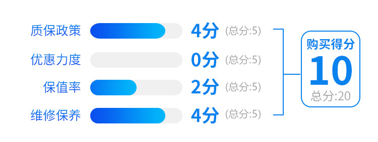 宝沃的不设年限、不限里程的“终身质保”政策确实是极具吸引力,且保养费用也不算高,但宝沃的销售及维护保养网点覆盖率较低,给保养维修带来了一定的不便,且作为一款未有优惠政策的冷门车型,其二手市场保值率也较低。