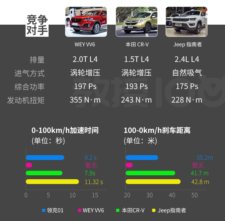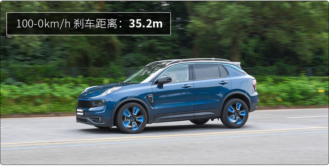 貌似领克的刹车都做得挺不错,同事试驾过02和03,都对刹车表现奖励有加,实际体验也相当不错,很线性很有力的那种,但不会很顿挫,给足信息,配备马牌CSC5轮胎,最终刹车距离35米,比汽车之家实测少了2米,跟很多媒体实测相近,值得表扬。