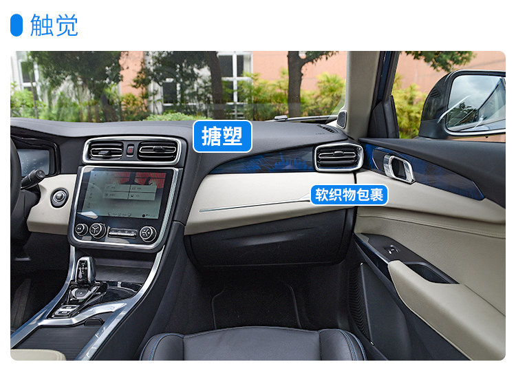 用料可以说是比大部分合资SUV都要好,织物软包裹比较有新意,但是不耐脏,还有和车身同色的蓝色饰板,其实经不起细看,花了的感觉有点廉价,但用料和设计是不错的。