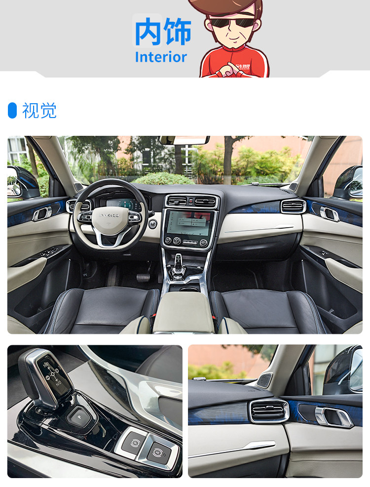 内饰采用非对称设计,本次试驾车型为耀蓝版,内饰饰板采用和车身同色的色调,颇为协调,中控倾向驾驶员一侧,最有玩味儿的是电子挡把,小巧精致,让人很想去把玩它。