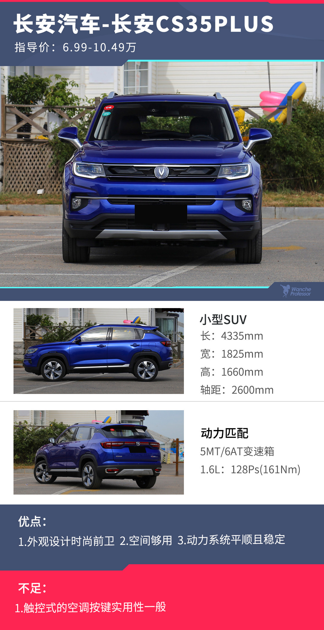 我们在选长安CS35的配置时,首先把它分为两类,自动挡和手动挡,那选起来就会直观很多,首先我们看到手动挡车型的配置,起售价为6.99万,实际就是7万,再加上5900元,可以升级的配置不少,而且7.58万也符合这个级别的手动挡车型水平,虽然没有说很吸引,但也一点都不贵了。