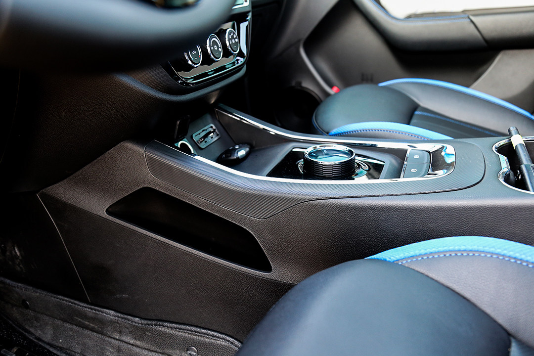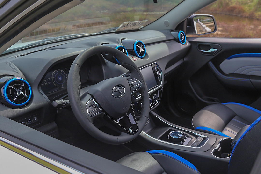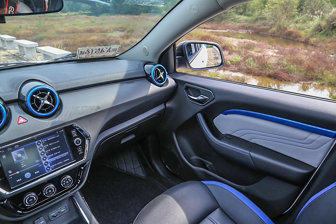内饰方面,配合外观的设计和新能源的身份,在空调出风口、座椅还有门板内侧也加入了蓝色的装饰,这都是比较常见的手法。