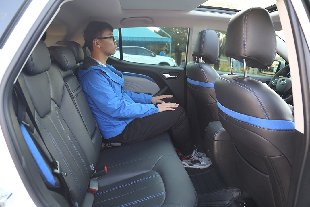 买SUV,相信很多人看中的是它的实用性,乘坐空间方面,值得点赞的是能够做到和燃油版一样的表现,体验者标准身材身高1.75米,调整好驾驶坐姿后,后排仍有2拳左右的空间,而且后排地板凸起相当小,不影响乘坐。