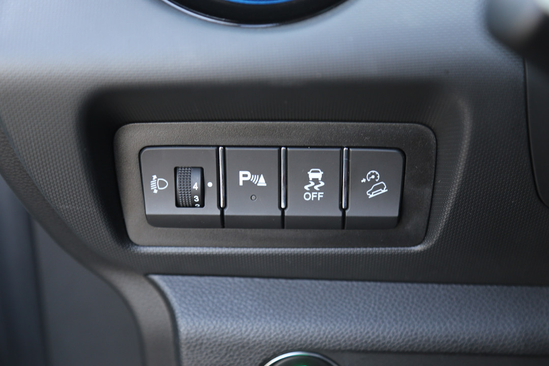 储物空间倒是做得更出色,换挡按钮前方有一块区域可以放一些手机和随身物品,两侧还有一个储物格,方向盘左侧还有一个小储物格,放卡片零钱都没问题。