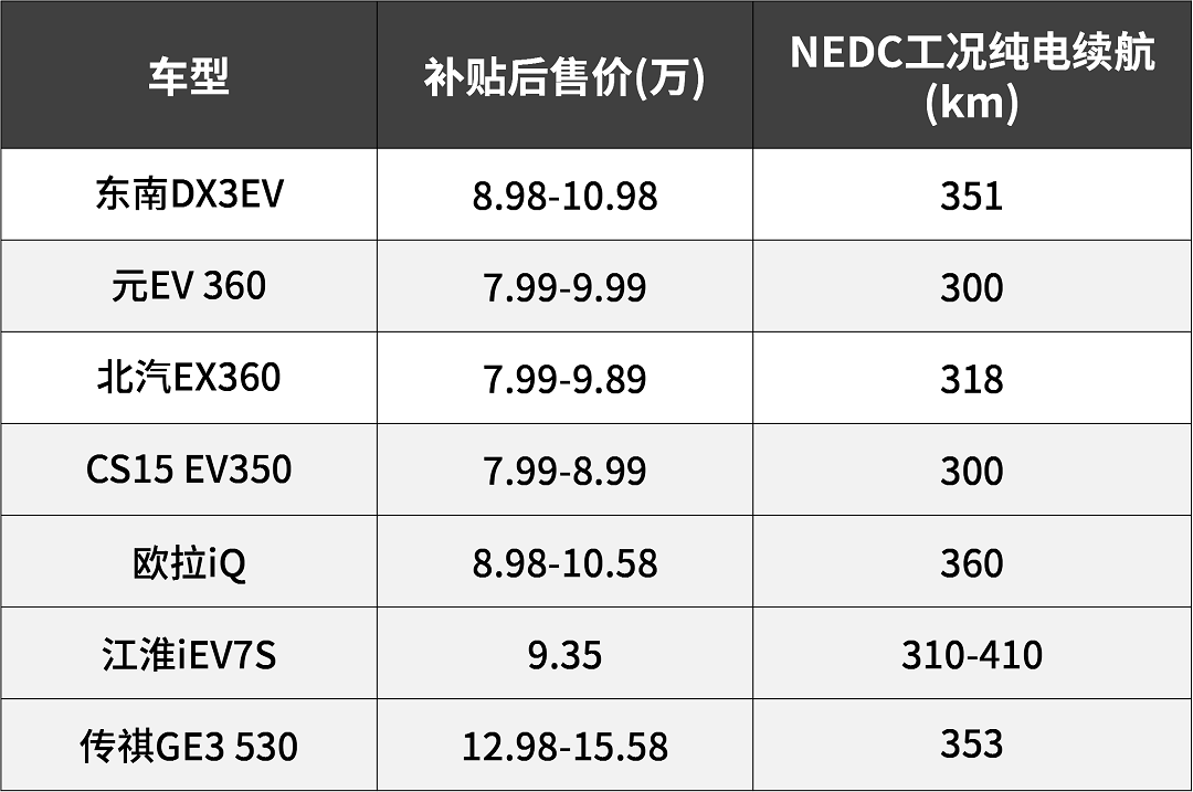 然后你就会发现,GE3和GSe价格都有点高,再挑选出有一定口碑的,真的没几辆,要么元EV,要么DX3EV。