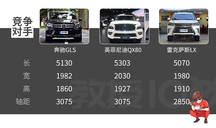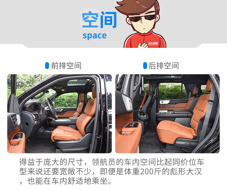 相比竞争对手,领航员在长度宽度高度和轴距上都实现了全面碾压,再加上方正的设计,领航员看起来几乎是这个级别里最霸气的车了。
