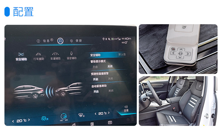 试驾的车型搭载了ADAS驾驶辅助系统,包括主动刹车、ACC自适应巡航、车道偏离预警等,这都是目前比较主流的智能辅助功能,主要应用在中高级车型上,能大幅提高安全性和便利性,这次试驾的是高配车型,还配备了座椅通风及加热功能。
