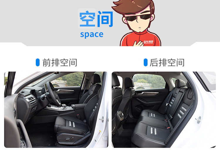 教授身高1.75米坐进车内,由于车身是扁平的轿跑造型,前排头部空间不算局促,有3指左右余量;第二排头部空间则不受影响,腿部空间有2拳,乘坐空间比较充裕,后排地板有凸起,乘坐受到微微影响,但车身宽度足够,腿不必放到凸起上面。