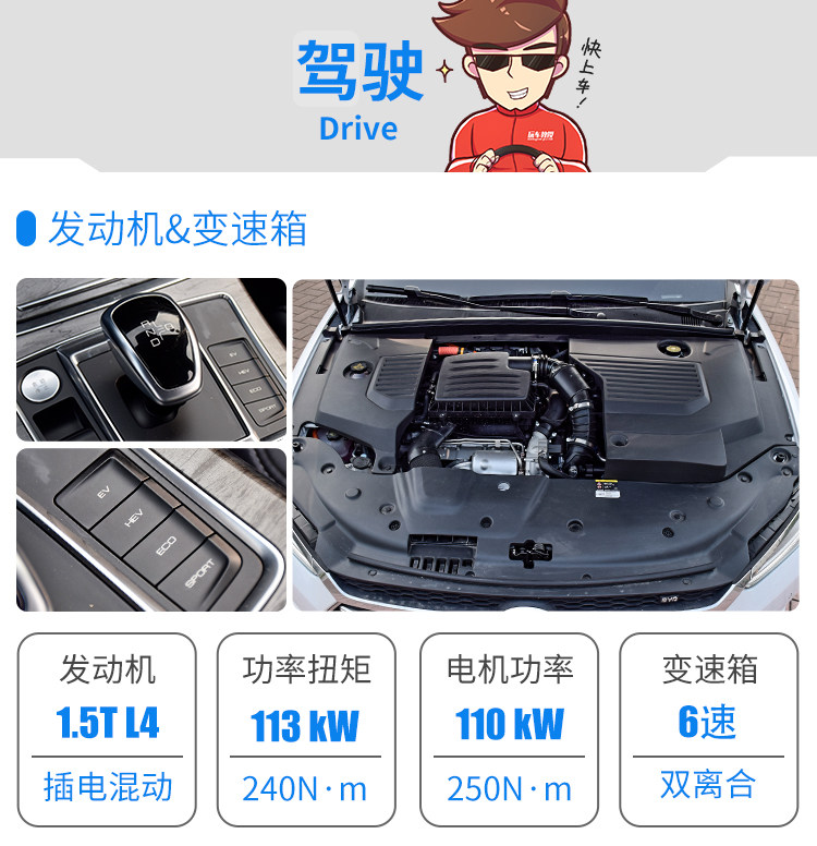 秦Pro DM的混动系统逻辑是“优先把电池用完”,无法预设SOC值,这样的逻辑很好理解,8块的油价,一块钱多点的电价,明显用电更理智;发动机在油门一半或者是往后才会介入,只要电量够,SPORT模式也会更多使用电机,发动机介入的转速也不高, 当然你想全力一把秦Pro DM随时都能瞬速满足你,发动机的介入相当安静,而且速度还挺快,在交通合法范围内,提速超车不费吹灰之力。