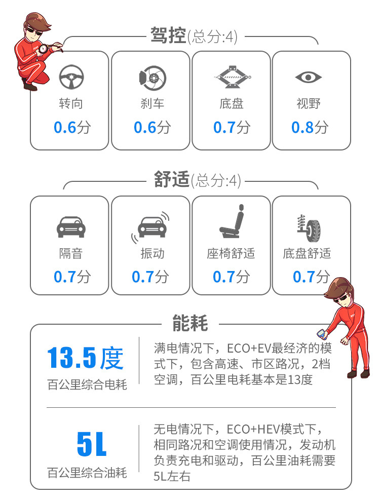 然后在没电的情况下,电量在10%以下,表显5KM纯电续航里程的情况下,全力加速轮胎打滑没那么严重,取得6.8秒成绩,也足以在众多紧凑级轿车当中名列前茅了。