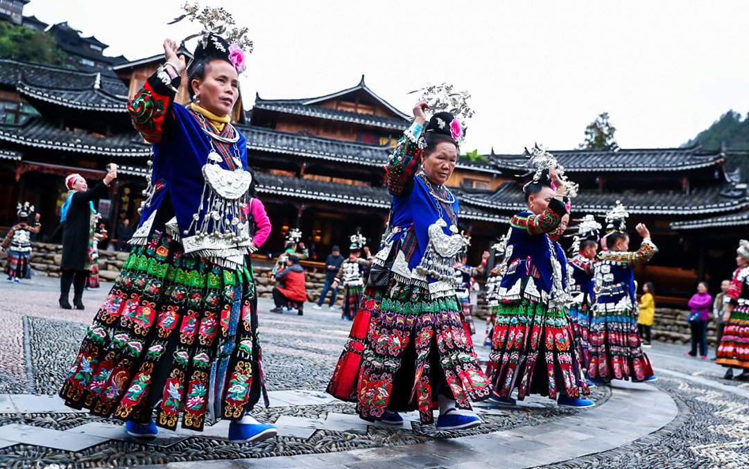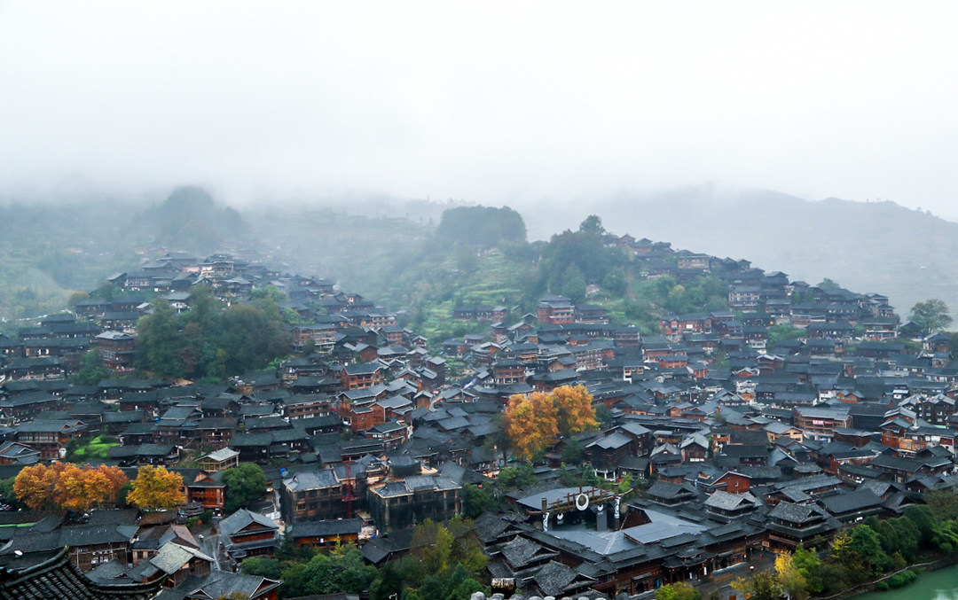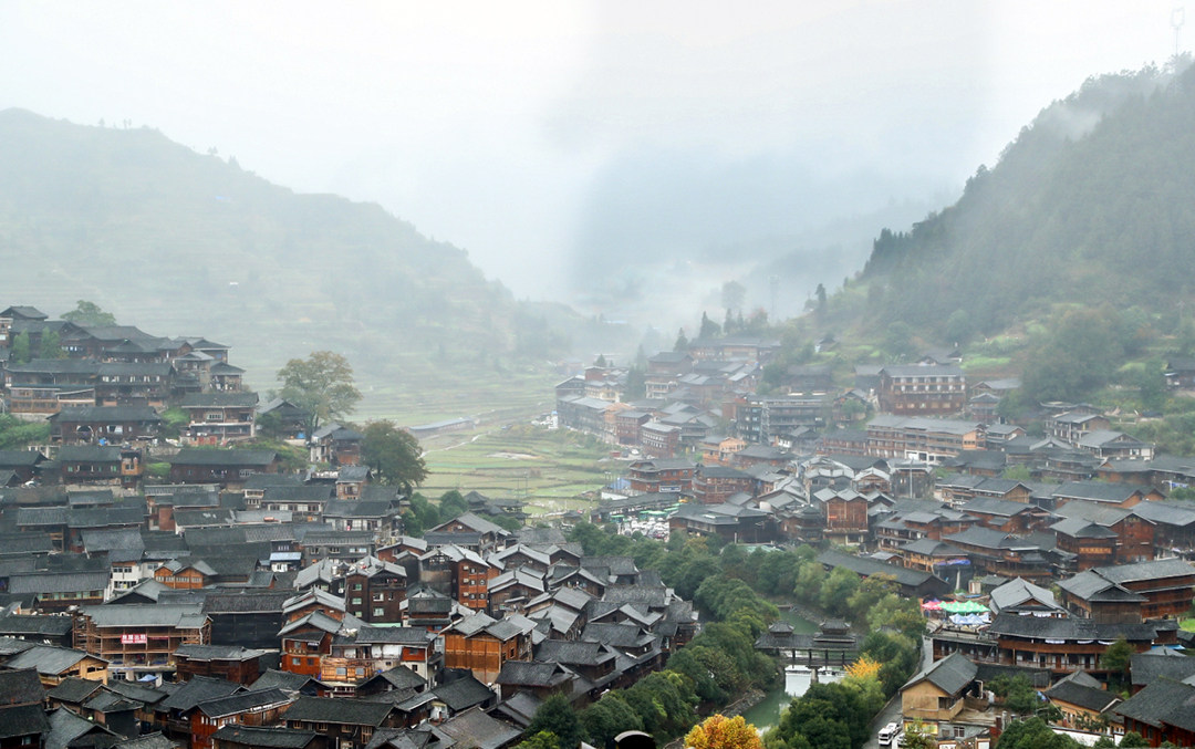 西江千户苗寨处与河流谷地之中,绿水穿过两侧的青山,旁边坐落着一千四百多户的苗寨。西江千户苗寨是一个保存苗族“原始生态”文化完整的地方,由10余个依山而建的自然村寨相连成片,是目前中国乃至全世界最大的苗族聚居村寨,也是领略和认识中国苗族漫长历史与发展之地。