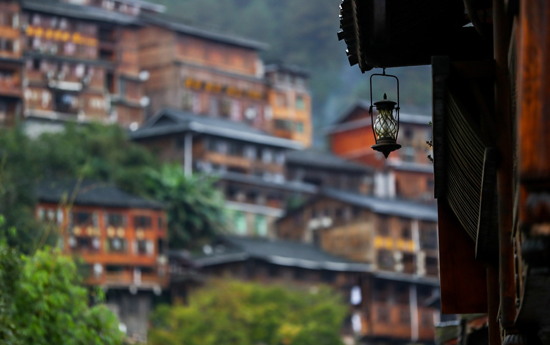 此时的千户苗寨依然笼罩着蒙蒙的烟雨,烟雾缭绕伴着炊烟,空气中弥漫着苗寨独特的韵味,行走在这苗寨中,与钢筋水泥的城市感觉截然不同。那些寻常的老百姓,世世代代生活在这样的环境中,即便现代化的冲击,也很难改变他们传统的生活方式,与世无争的态度有时候也着实让都市中忙碌生活人羡慕。