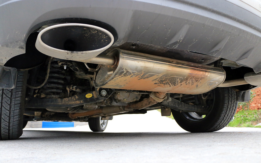 由于一路的奔波,尾部已经有了很多泥土的痕迹,这也是我们翻山越岭最好的证明。尾部的造型就相对柔和了许多,层次较为分明,印象比较深刻的是贯穿式的尾灯,在两端进行了一个回钩的设计,对称式双边双出椭圆形排气管为整车增添了运动的气息。