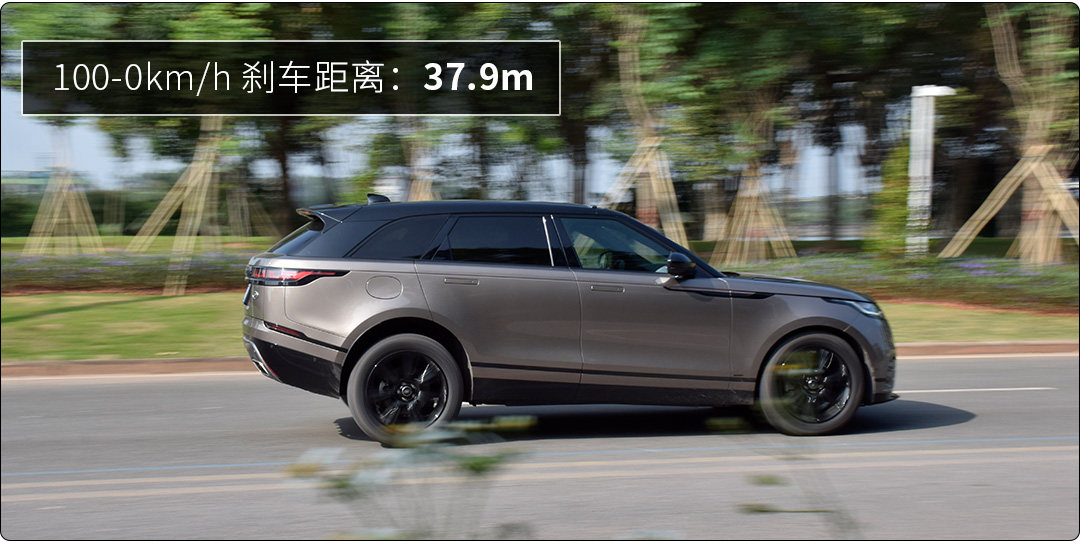 制动的时候四条275/45 R21的轮胎能够很好地抓住地面,最终37.9米的成绩非常优秀。