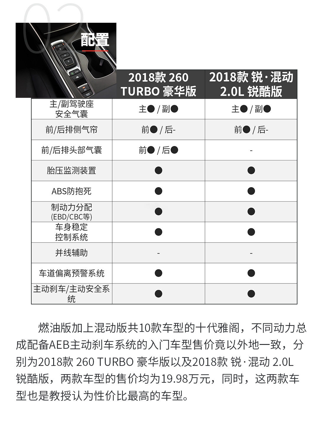以上是6款售价20万内配有AEB主动刹车系统的车型,可以看出,不少配有AEB主动刹车系统的车型都拥有不错的性价比,同时对应的主被动安全配备都较为齐全,随着该系统的进一步普及成本进一步下降,相信AEB主动刹车系统有望成为全系标配。虽然主动刹车系统能有效减少碰撞或降低碰撞带来的伤害,但是并不代表驾驶员就可以掉以轻心,否则再强大的主动刹车系统也形同虚设。