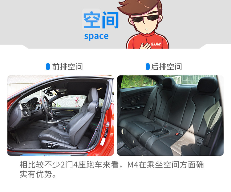 相比较竞品,M4的轴距和长度都有不小的优势,这也种优势直接体现在了后排空间上。