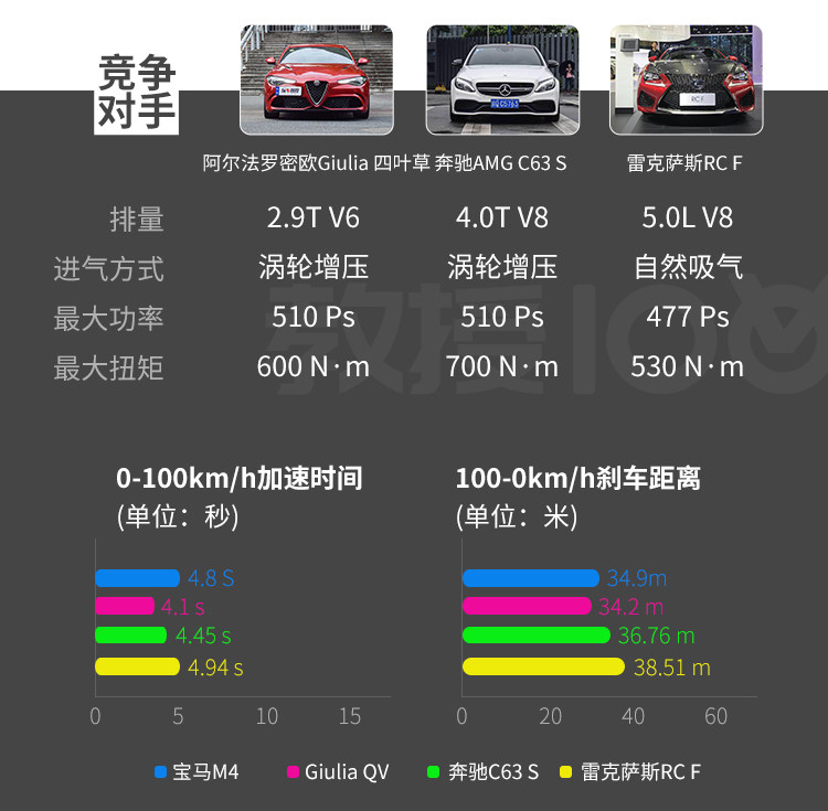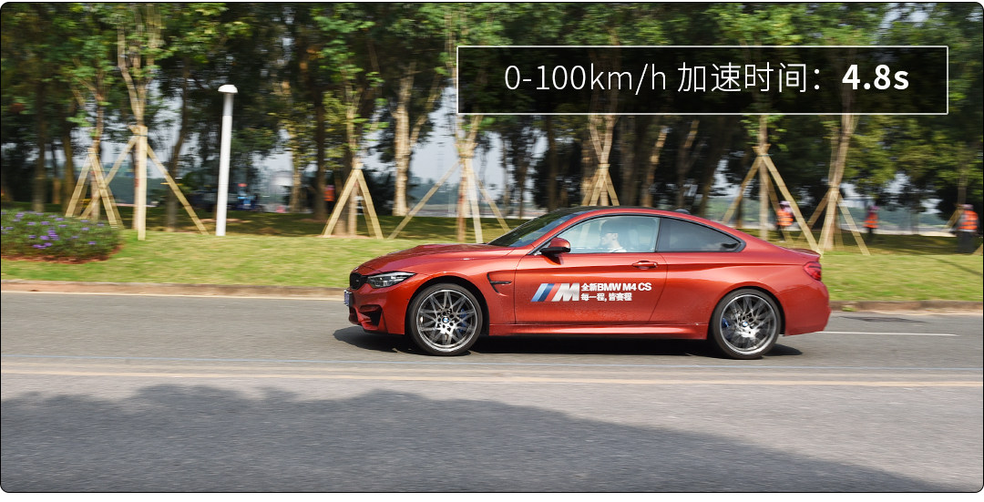关闭ESC打开弹射模式后,M4起步十分凶猛,1挡时后轮能够拉起阵阵浓烟,双离合变速箱换挡顺畅快速,最终M4的百公里加速时间为4.8秒,我们测试的路面沙尘较多,因此后驱在这里的测试不占优势,如果路面条件再好一些的话,成绩会更快。