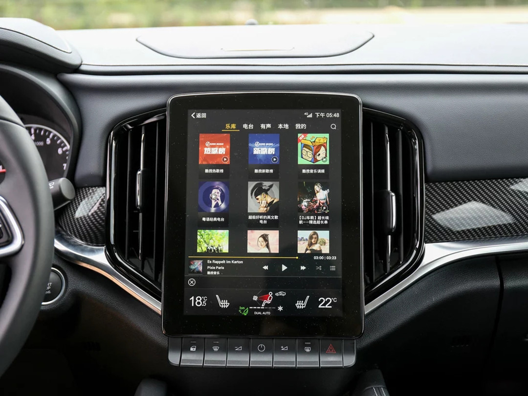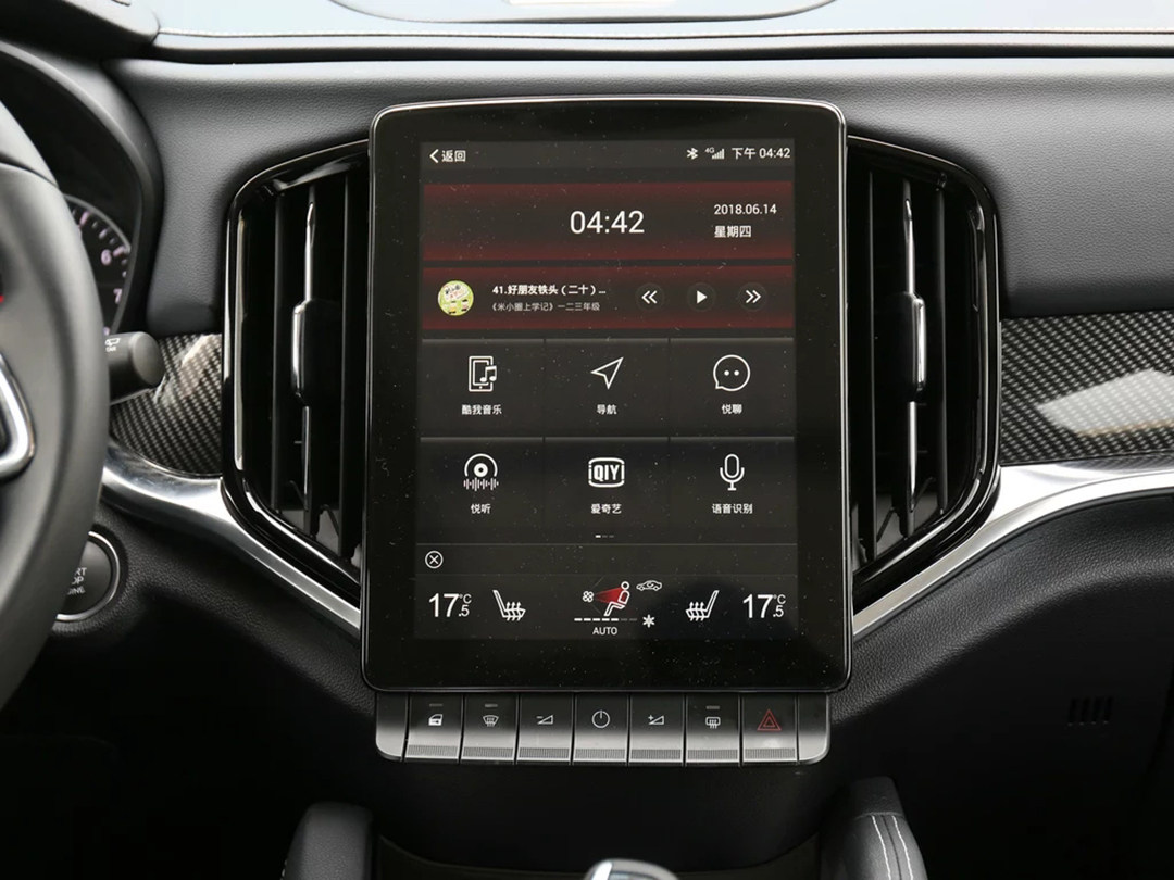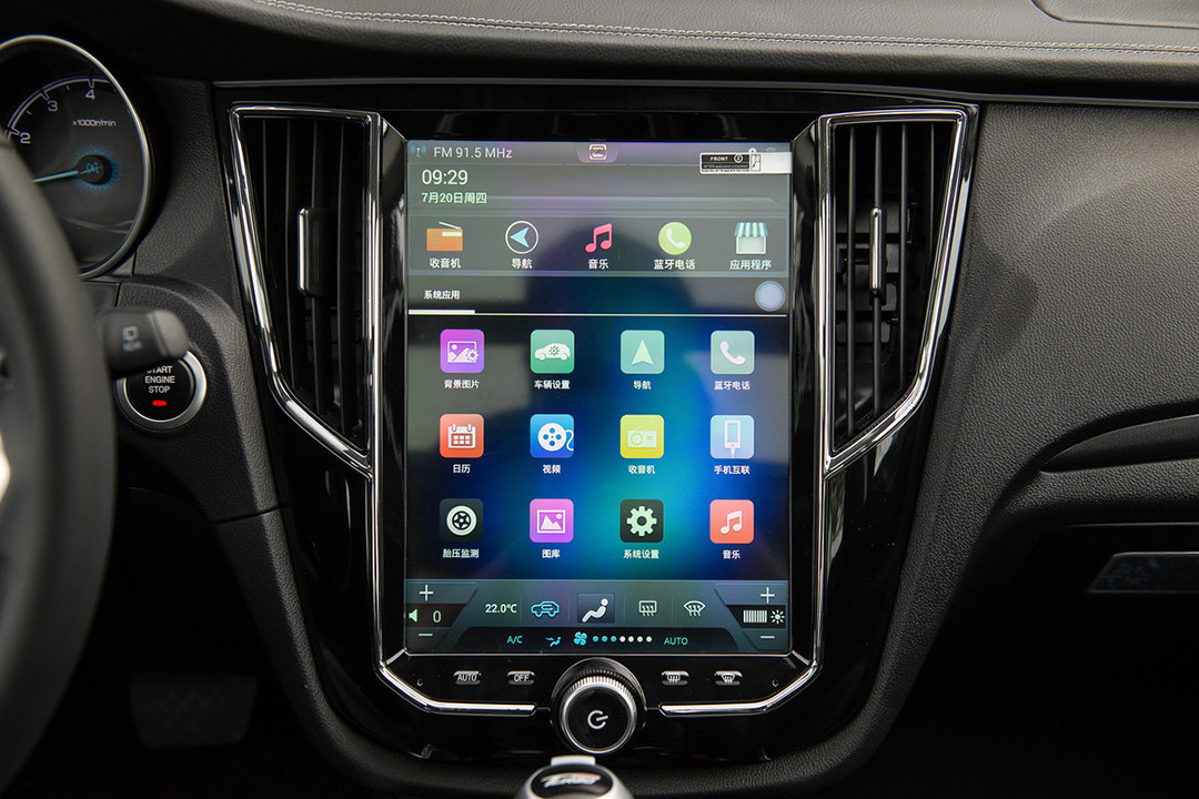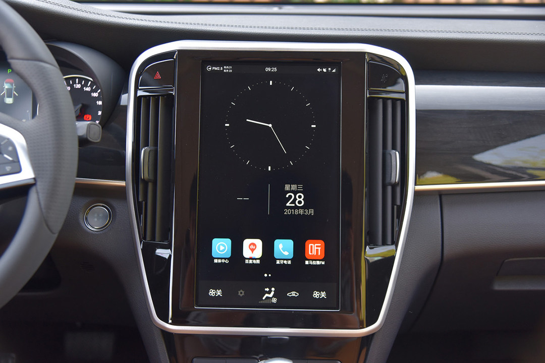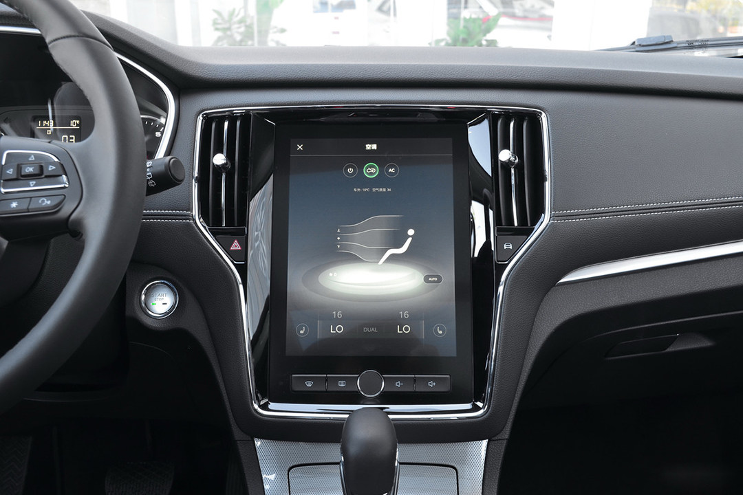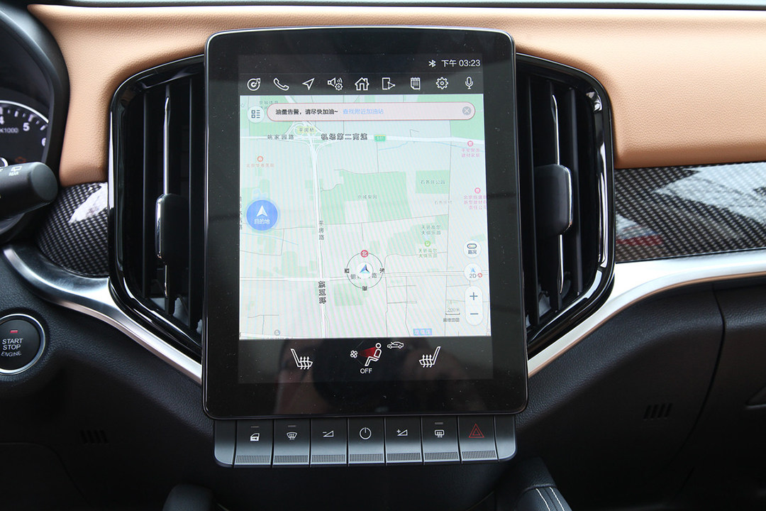 10.4英寸的中控屏采用悬浮式设计,造型及UI界面都采用了扁平化的设计,并在屏幕下方设置了一些常用的按键,设计感与实用度都不缺。