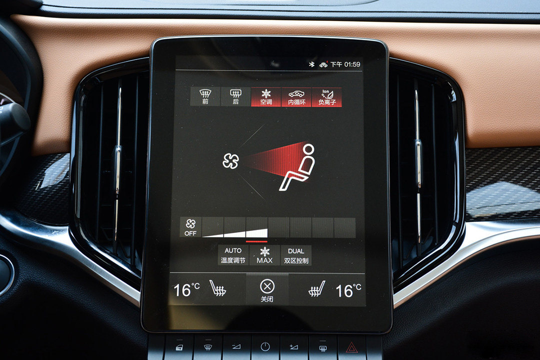 还是一样,常用的功能设置都集成到了中控屏内,但实测触摸反应度一般,略微有点迟滞。