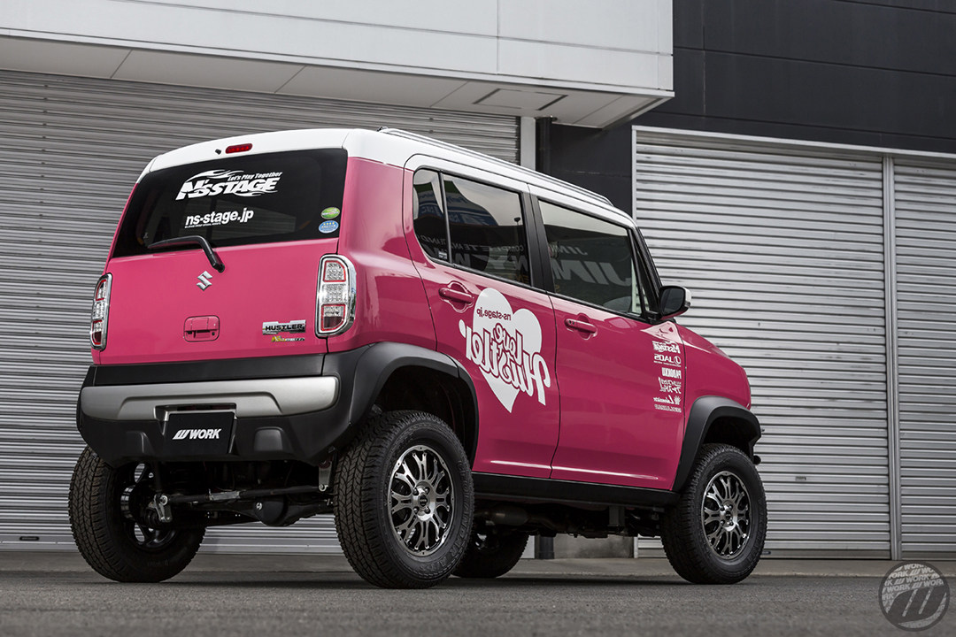 从外观上看,Hustler依然必须严格按照Kcar规定的尺寸制造。铃木Hustler长宽高分别为3395/1475/1665mm,轴距为2425mm。为了营造更大的空间,整车使用了教平直的线条,加上圆形头灯的设计,总体带来一点复古的感觉。同时外观风格上也是现在时下流行的SUV款式,离地间隙比较高。如果Jimny算是硬派作风,Hustler就是潮流作风。值得一提的是,Hustler在2014年刚推出的时候,就一口气推出了11款颜色和外观配搭,对年轻人非常吸引。