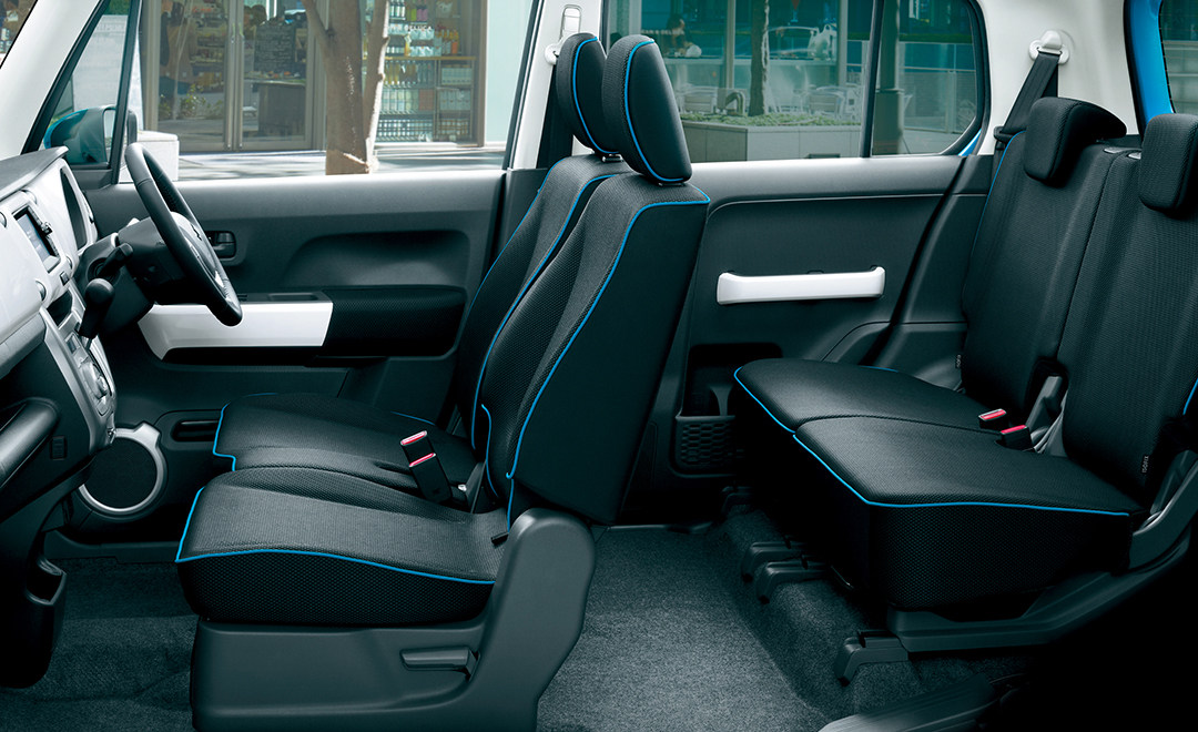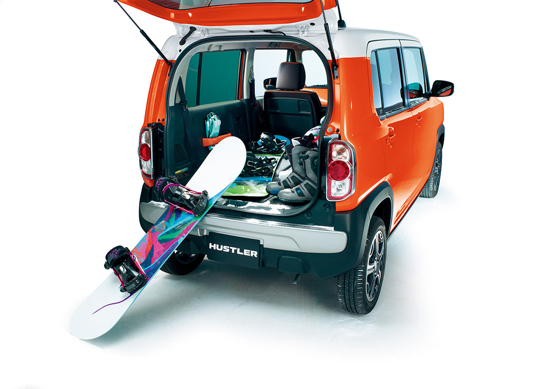 说到Kcar,很多朋友第一反应是”这车真小,空间很小“。实际上现在的Kcar品牌,已经将“偷空间“的技巧提升到极致。Hustler是一台五门四座车型。首先前排空间方面,铃木将所有的排挡杆和功能按、杯架等装到中控台上,前排座椅为左右连通设计,即使车身窄,但对于乘坐者来说横向空间是非常足够。另外由于发动机体积小。缩短了引擎仓空间,腾出更多地方给驾驶舱,因此纵向空间获得了确保,后排腿部空间有2拳左右,已经获得一个很不错的乘坐空间。