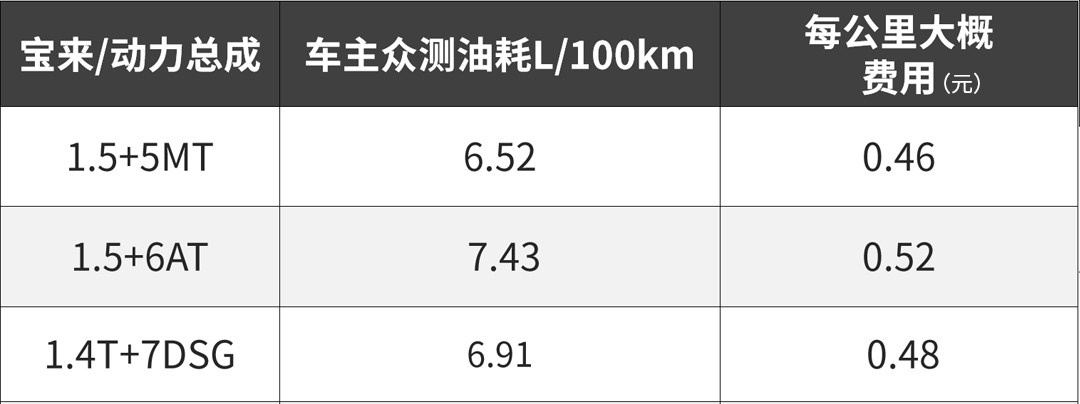 宝来采用的1.5L发动机虽然功率一般,但是对于油耗的控制还是不错的,手动挡车型特别省油,发动机在中等转速下,动力就已经比较充盈,因此油耗表现不错。而1.5+6AT、1.4T+7DSG车型的油耗表现也不高。