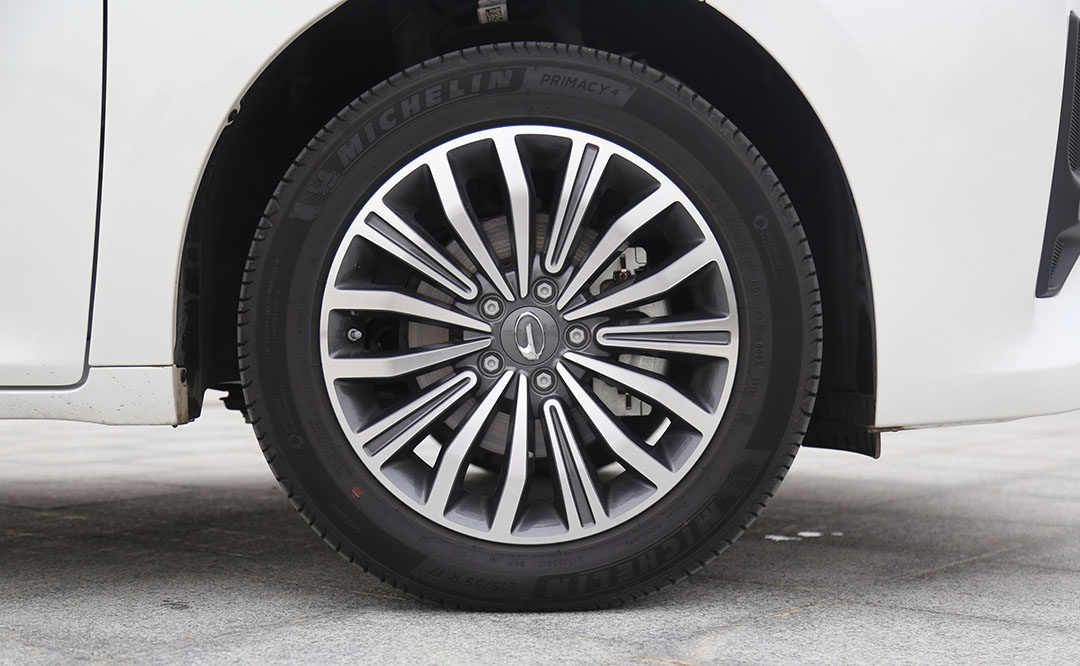 多幅式的轮圈样式非常的耐看,轮胎采用的是米其林的浩悦轮胎,主打舒适和静音,规格为215/55 R17。GM6的车身尺寸分别为4780x1860x1730mm,轴距为2810mm,与GL8和途安L比起来较为出色,至于真正的空间表现,我们后面再看。