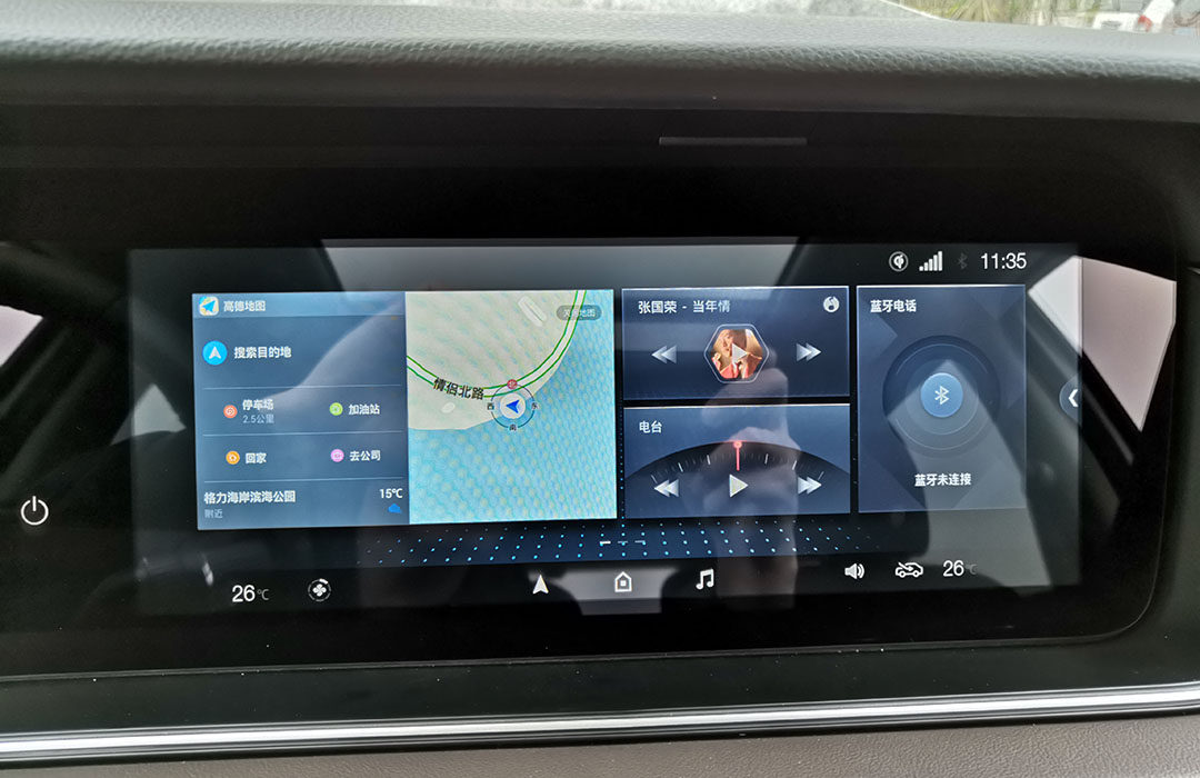 中控液晶显示屏分辨率非常高,提供两种主题风格(经典版、科技版)三个模式(Normal、ECO、Sport),满足用户不同的审美需求。侧面和底部采用了一圈的亮色镀铬条来装饰。中控屏搭载的是传祺的祺运AI智能系统,能够提供导航、音乐等丰富功能,并且大部分能实现语音控制。