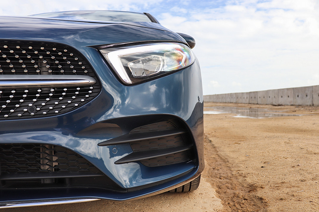 棱角分明的三角形大灯借鉴于奔驰最新力作CLS,安放在A-Class L身上也不显违和,甚至说越看越有味道。稍显遗憾的是,全LED大灯并未采用常见于豪车的几何多光束大灯,科技感教授觉得可以做得更好。