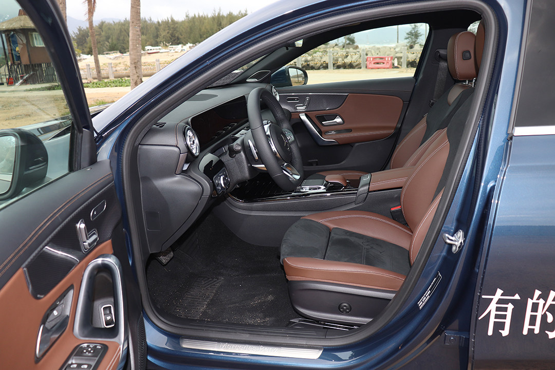 长轴距很好地体现在腿部纵向空间上,宽敞的冗余空间能供腿部活动自如、稍作伸展,翘二郎腿不在话下。辅以兼顾支撑性、舒适性的皮革+微纤维运动座椅,让A-Class L的空间利用率和乘坐舒适性达到了越级水准。自此,紧凑型轿车谈空间不再是伪命题。