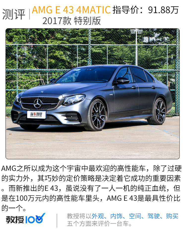虽然为43后缀的E级AMG车型,但经实际测试,它本身的性能并不差,无论是动态性能还是本该有的品质感,都对得住91.88万元的这个售价。这也是AMG E 43最有策略的一面,对比同级的高性能版本,该价位买不到M3,而新一代的奥迪S6、S7并未完成更新换代,并且不需要E 63 AMG的价格就能享受到它80%的性能,这种巧妙的定价,会让AMG E 43有着相当强的竞争力。