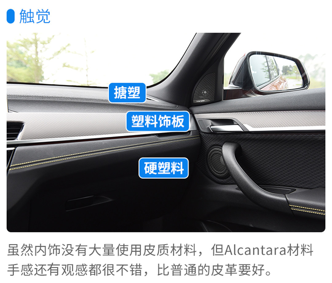 宝马X2的车厢内部就显然没有E-PACE那么有特色,放眼看去一切的元素都能在别的宝马车型上看见,没有做大的创新和突破,同时受限于配置水平,仪表盘非全液晶,中控屏尺寸也比较有限,相对于运动化的外观,X2的这套内饰有点平淡了。