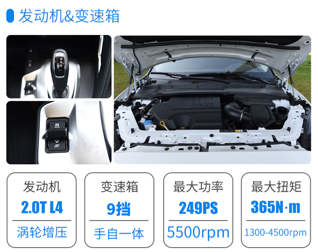 2.0T高功率版的发动机账面参数很给力,249Ps最大马力和365N·m的最大扭矩,让这头小豹子拥有了充足的动力储备,油门踏板过半,你就能感受到它按捺不住想要飞奔的欲望。
