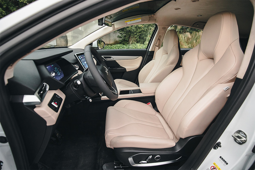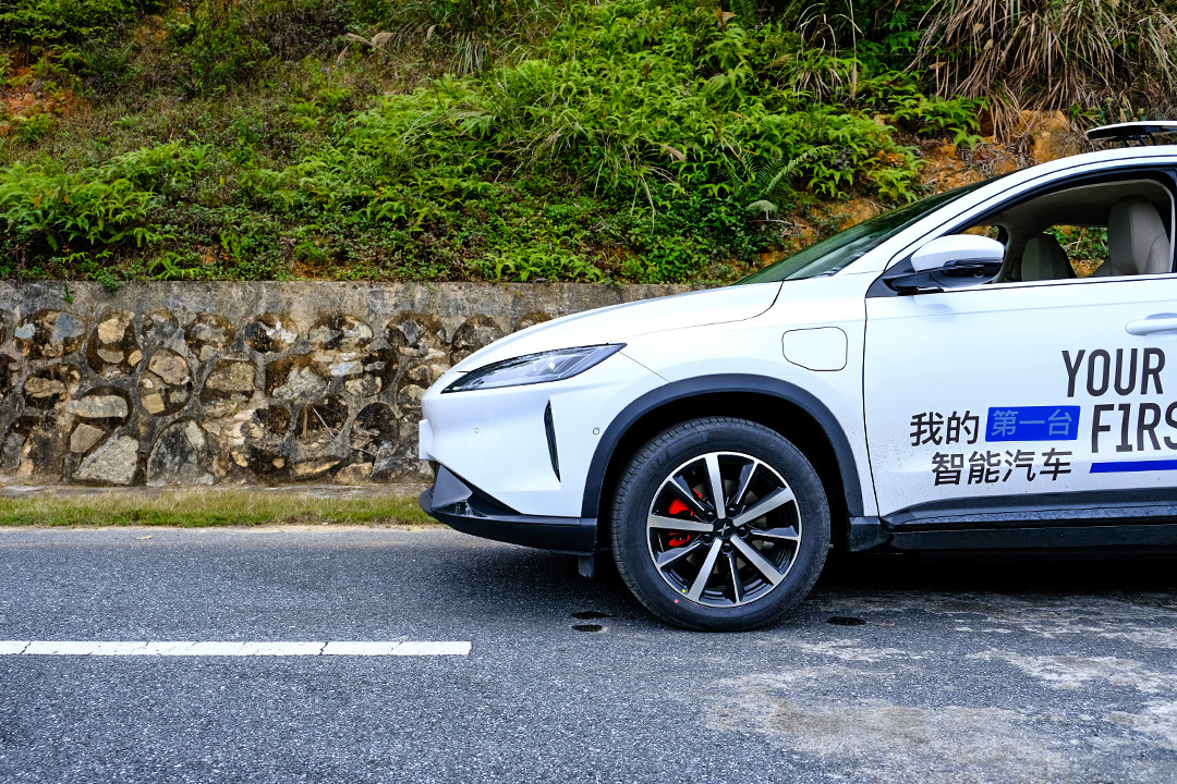 来到道路驾驶,其实有点出乎意料的是底盘的滤震表现,可能是由于电池在底盘的缘故,整个车身的姿态很扎实,后悬是半独立悬挂,在连续的颠簸路段中可以感觉到悬挂是有条不絮的把颠簸给处理掉了,表现出一种十万出头普通SUV都难以做到的质感,而且车内NVH做得还算不错的,这是教授要点赞的。