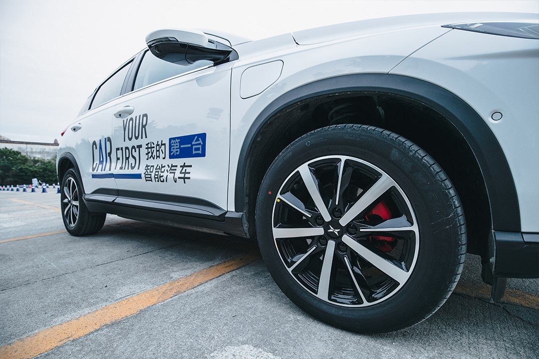试驾车型的轮毂是17寸的,高配车型是19寸的,都是双色设计,两款都挺好看的,高配的运动感更强,另外刹车卡钳是红色的,虽然不是什么高性能卡钳,也能提供不少的运动感。