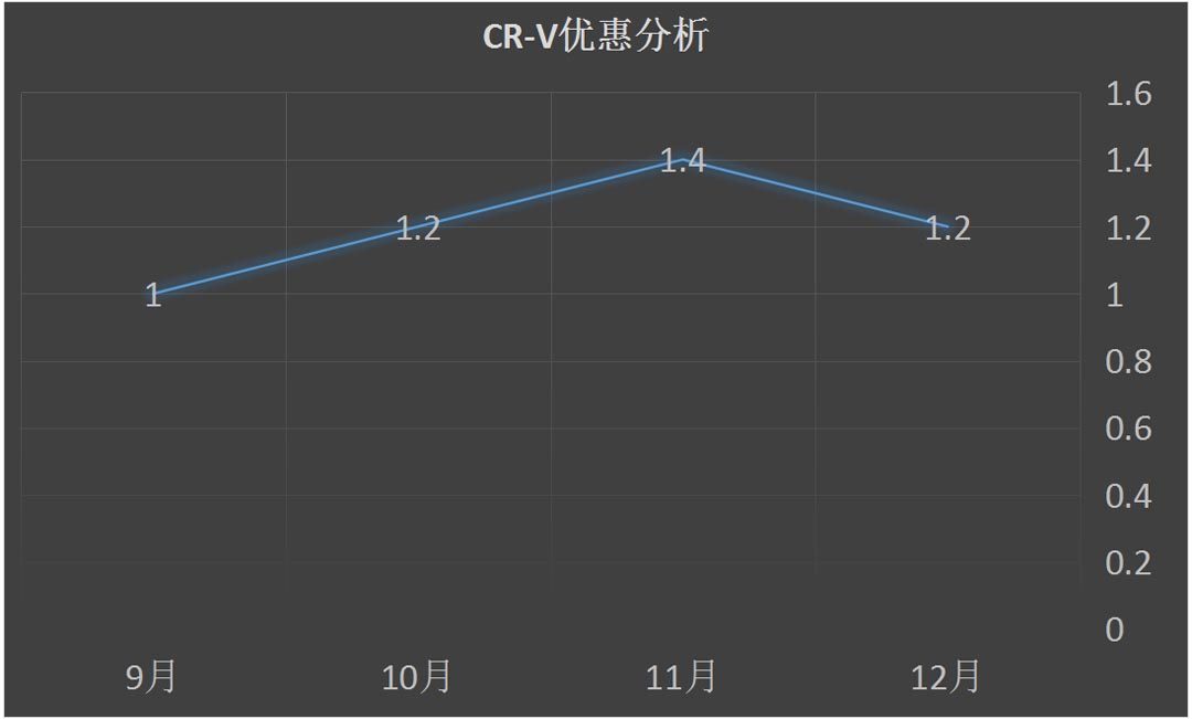 把眼光放到大家比较关注的紧凑型SUV上,CR-V的优惠力度同样是很稳定的,目前有1万左右的现金优惠。至2019款CR-V上市之后,10、11月的销量达到了1.7万左右。CR-V重回热销紧凑型SUV前列,CR-V在最“困难”的那段时间里优惠都没有那么大,接下来应该也会保持现在的优惠水平。
