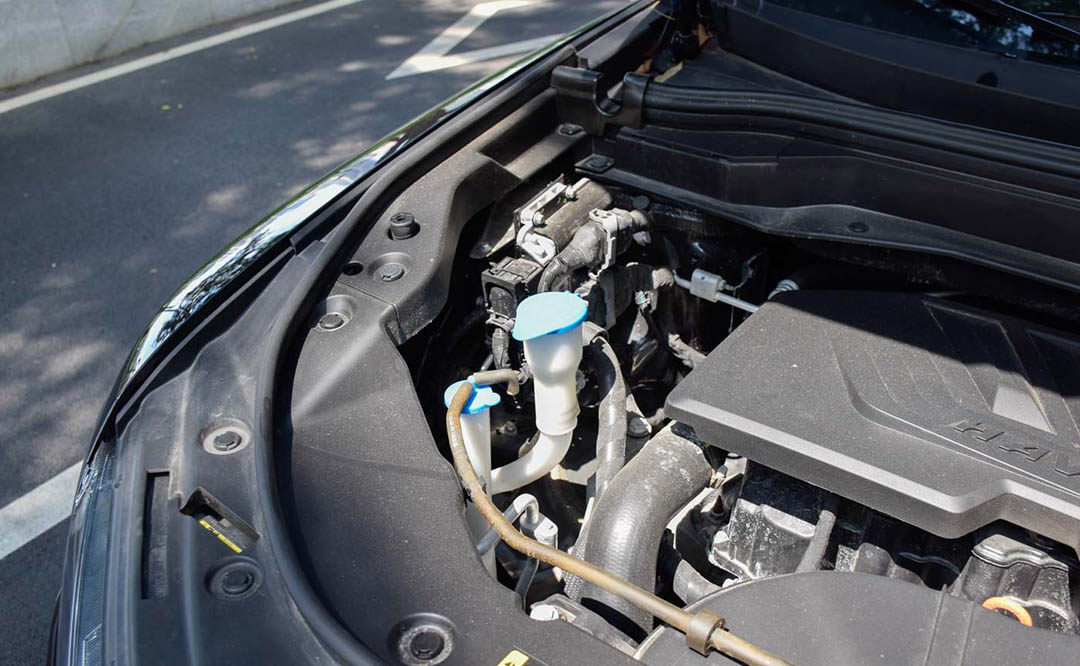 查看整体情况,整个发动机舱应该保持干净,无油液的痕迹,没有明显的灰尘积累。启动发动机,刚启动的时候发动机的声音和抖动都会比较大,这是一个正常现象,因为新车启动的时候发动机有一个热车的过程,需要过段时间等发动机稳定后检查。